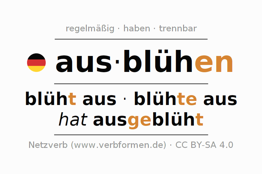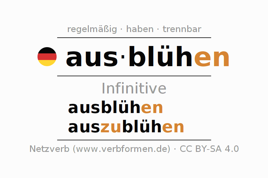 Das Verb ausblühen vollständig in allen Personen und Numeri im Infinitiv Präsens Perfekt konjugiert