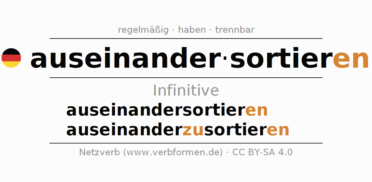 Infinitiv des Verbs auseinandersortieren