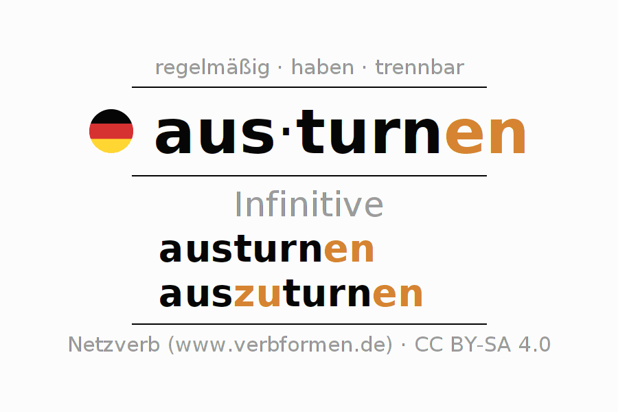 Das Verb austurnen vollständig in allen Personen und Numeri im Infinitiv Präsens Perfekt konjugiert