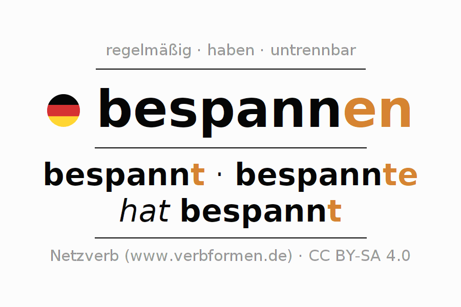 Das Verb bespannen vollständig in allen Personen und Numeri im Infinitiv Präsens Perfekt konjugiert