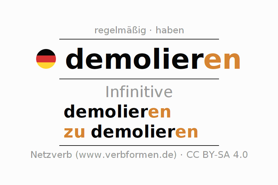 Die Formen im Infinitiv von demolieren sind: demolieren, zu demolieren