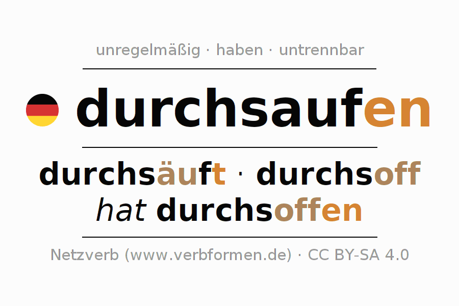 Das Verb durchsaufen vollständig in allen Personen und Numeri im Infinitiv Präsens Perfekt konjugiert