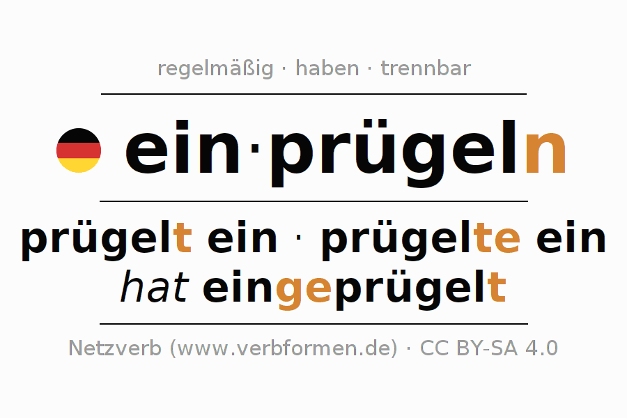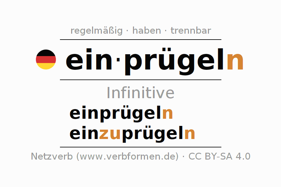 Das Verb einprügeln vollständig in allen Personen und Numeri im Infinitiv Präsens Perfekt konjugiert