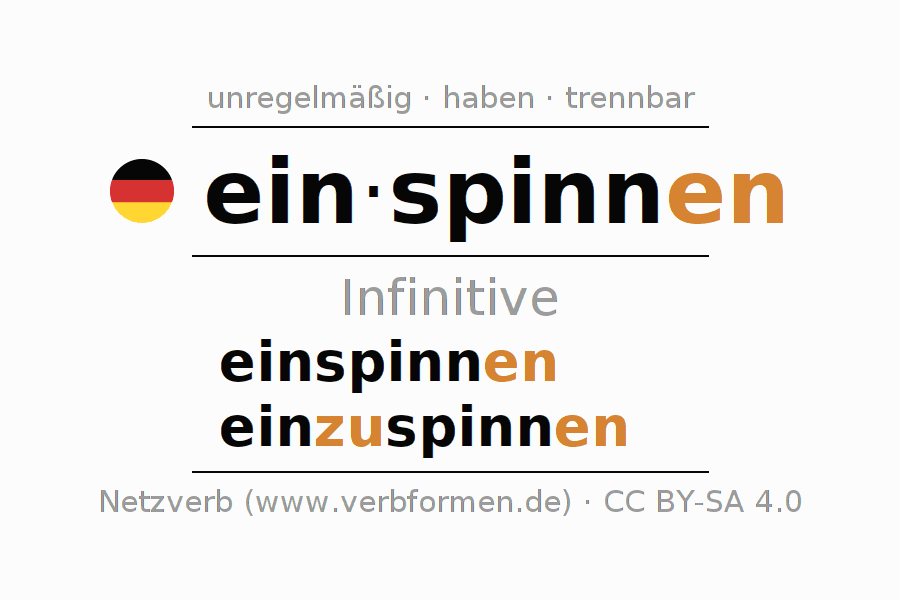 Das Verb einspinnen vollständig in allen Personen und Numeri im Infinitiv Präsens Perfekt konjugiert