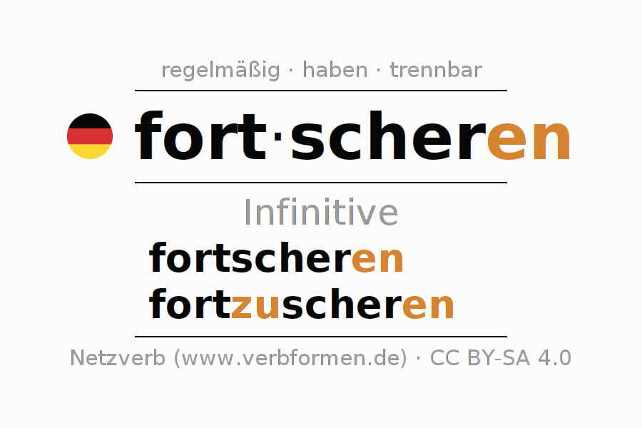 Das Verb fortscheren vollständig in allen Personen und Numeri im Infinitiv Präsens Perfekt konjugiert