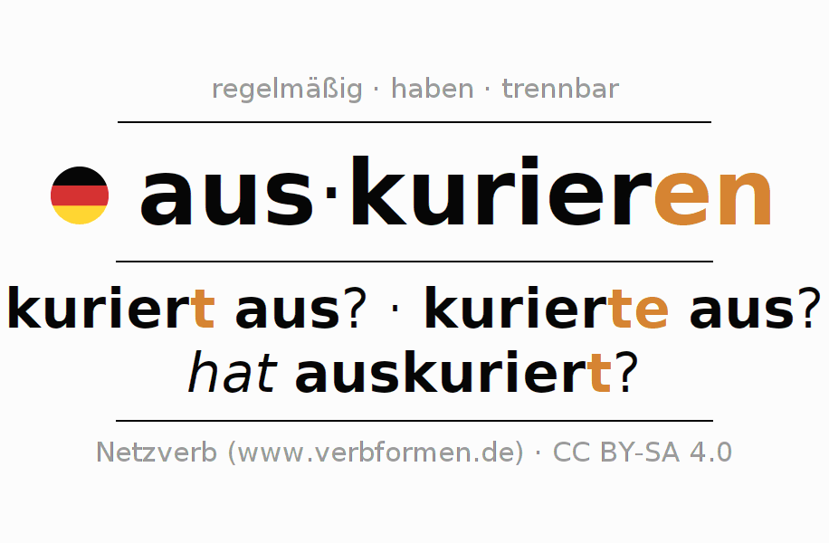 Das Verb auskurieren vollständig in allen Personen und Numeri im Infinitiv Präsens Perfekt konjugiert