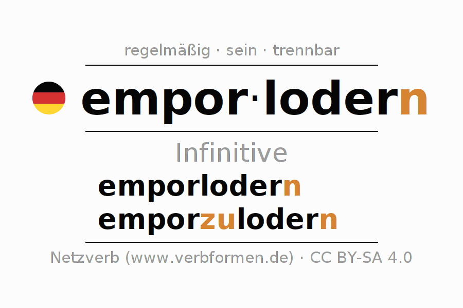 Das Verb emporlodern vollständig in allen Personen und Numeri im Infinitiv Präsens Perfekt konjugiert