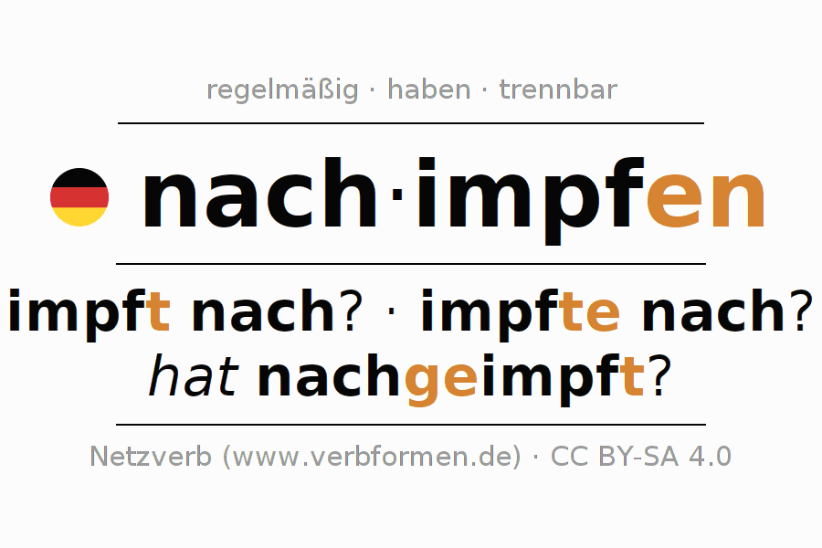 Das Verb nachimpfen vollständig in allen Personen und Numeri im Infinitiv Präsens Perfekt konjugiert