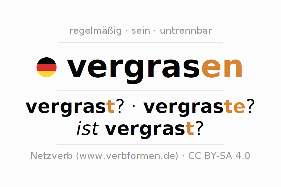 Das Verb vergrasen vollständig in allen Personen und Numeri im Infinitiv Präsens Perfekt konjugiert