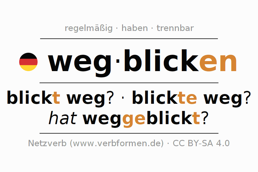 Das Verb wegblicken vollständig in allen Personen und Numeri im Infinitiv Präsens Perfekt konjugiert