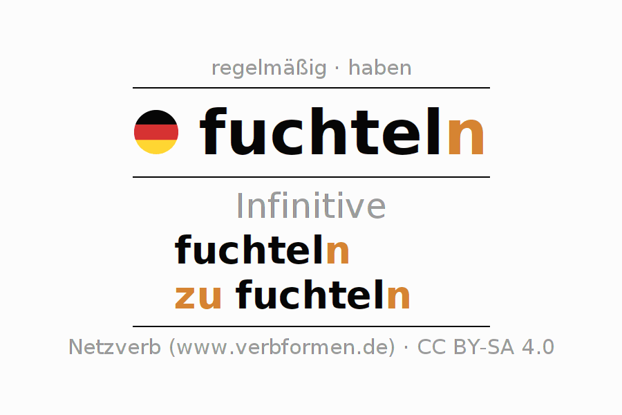 Das Verb fuchteln vollständig in allen Personen und Numeri im Infinitiv Präsens Perfekt konjugiert