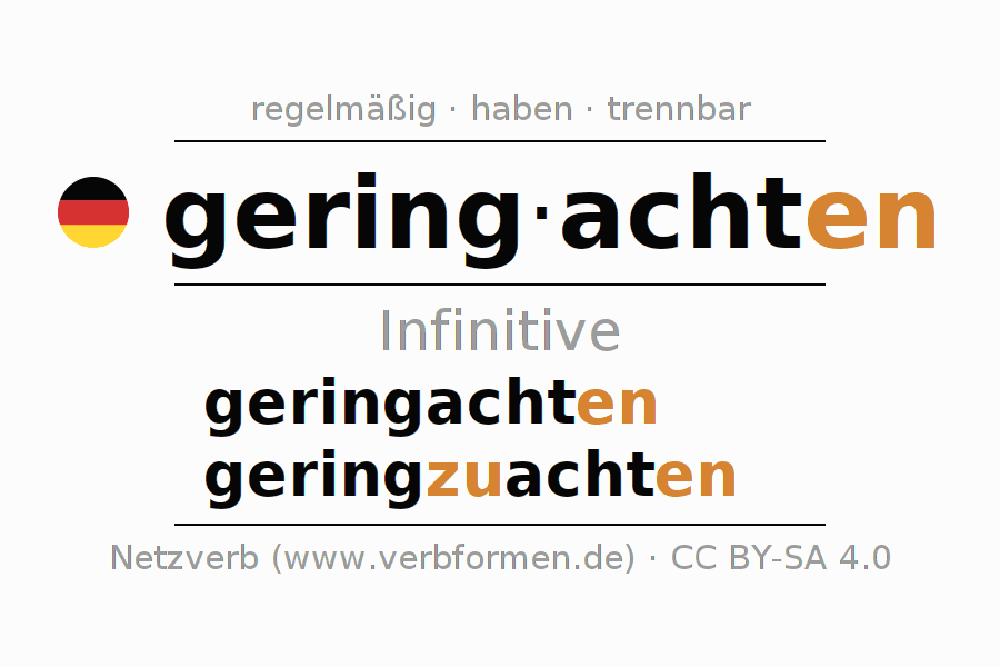 Das Verb geringachten vollständig in allen Personen und Numeri im Infinitiv Präsens Perfekt konjugiert