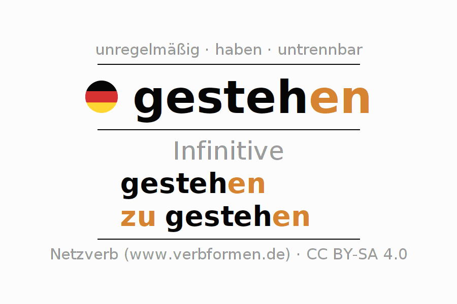 Das Verb gestehen vollständig in allen Personen und Numeri im Infinitiv Präsens Perfekt konjugiert