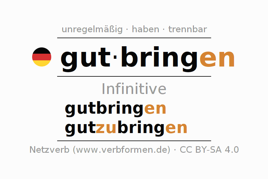 Das Verb gutbringen vollständig in allen Personen und Numeri im Infinitiv Präsens Perfekt konjugiert