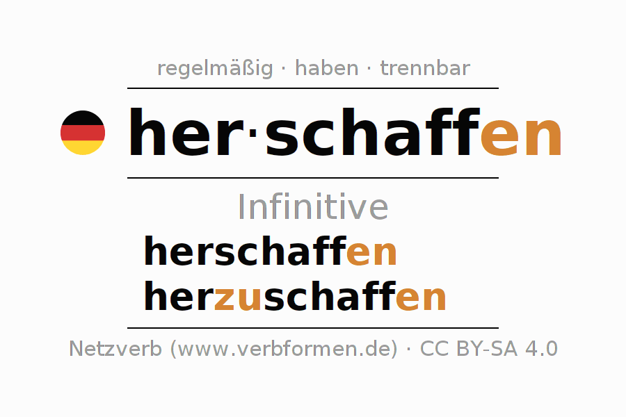 Das Verb herschaffen vollständig in allen Personen und Numeri im Infinitiv Präsens Perfekt konjugiert