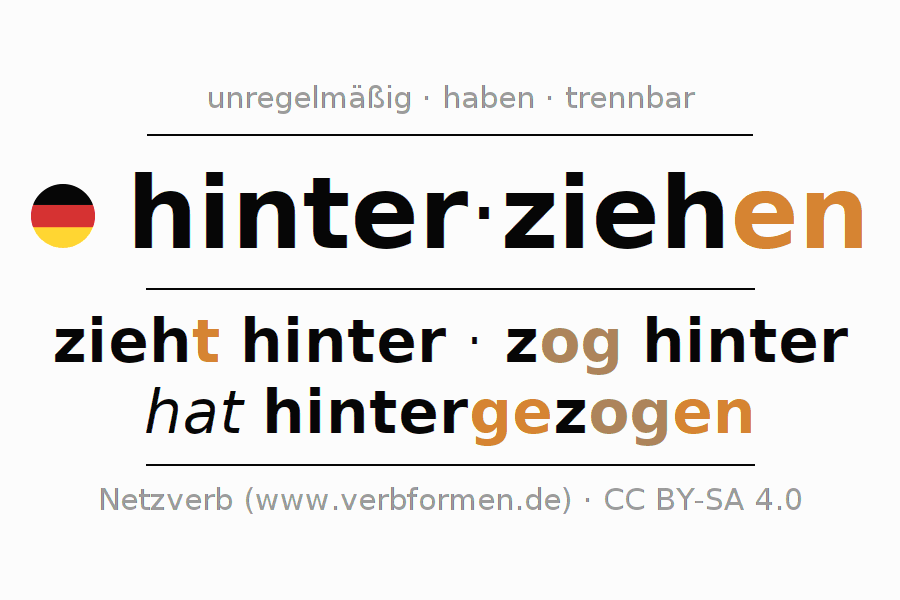 Das Verb hinter-ziehen (hat) vollständig in allen Personen und Numeri im Infinitiv Präsens Perfekt konjugiert