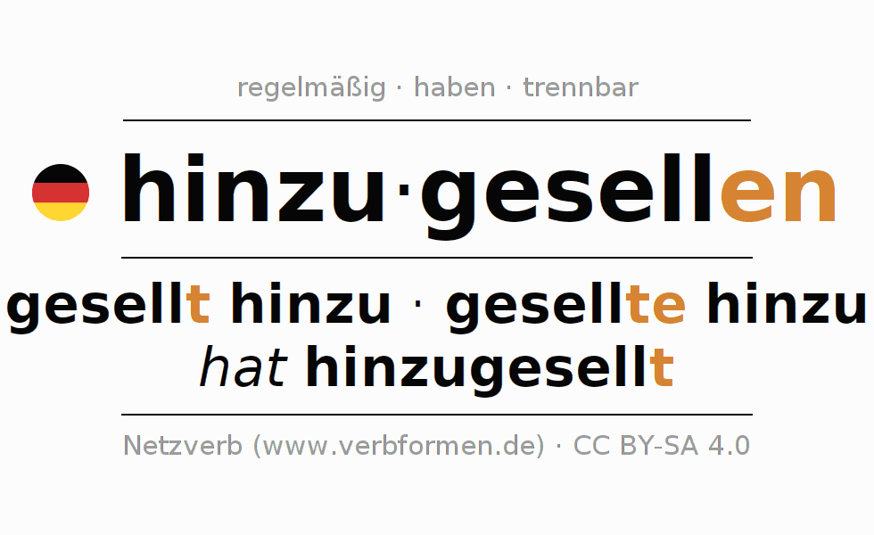 Das Verb hinzugesellen vollständig in allen Personen und Numeri im Infinitiv Präsens Perfekt konjugiert