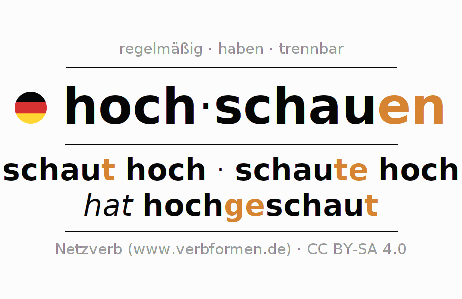 Das Verb hochschauen vollständig in allen Personen und Numeri im Infinitiv Präsens Perfekt konjugiert