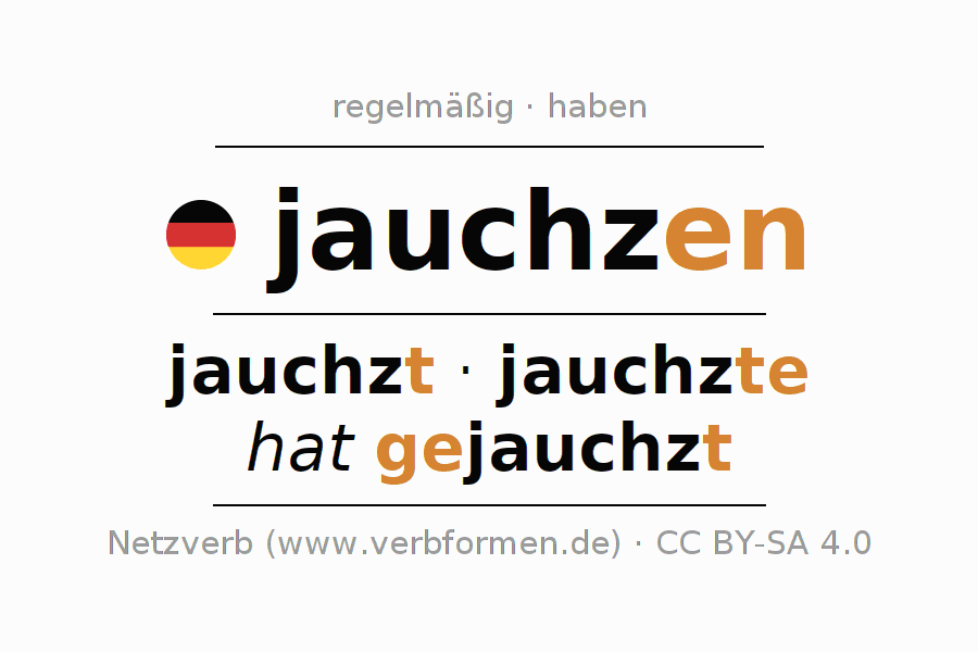 Das Verb jauchzen vollständig in allen Personen und Numeri im Infinitiv Präsens Perfekt konjugiert