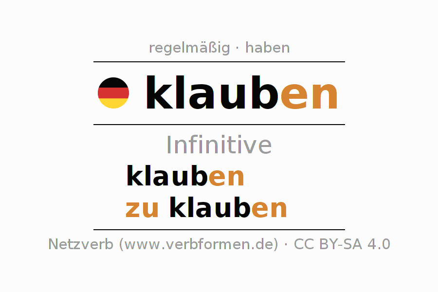 Das Verb klauben vollständig in allen Personen und Numeri im Infinitiv Präsens Perfekt konjugiert