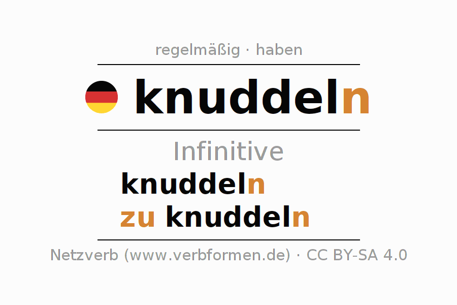 Das Verb knuddeln vollständig in allen Personen und Numeri im Infinitiv Präsens Perfekt konjugiert