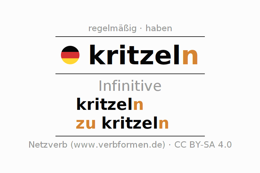 Das Verb kritzeln vollständig in allen Personen und Numeri im Infinitiv Präsens Perfekt konjugiert