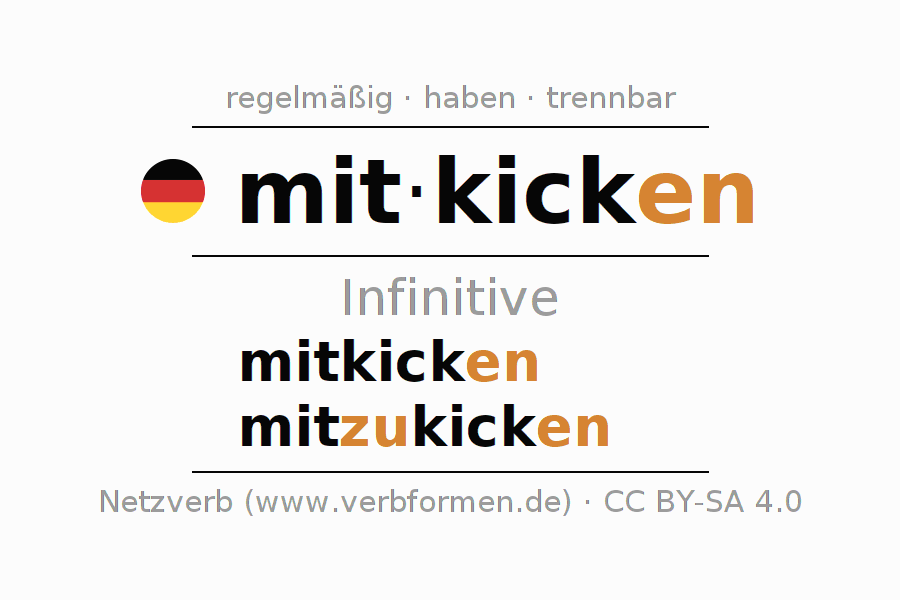 Die Formen im Infinitiv von mitkicken sind: mitkicken, mitzukicken