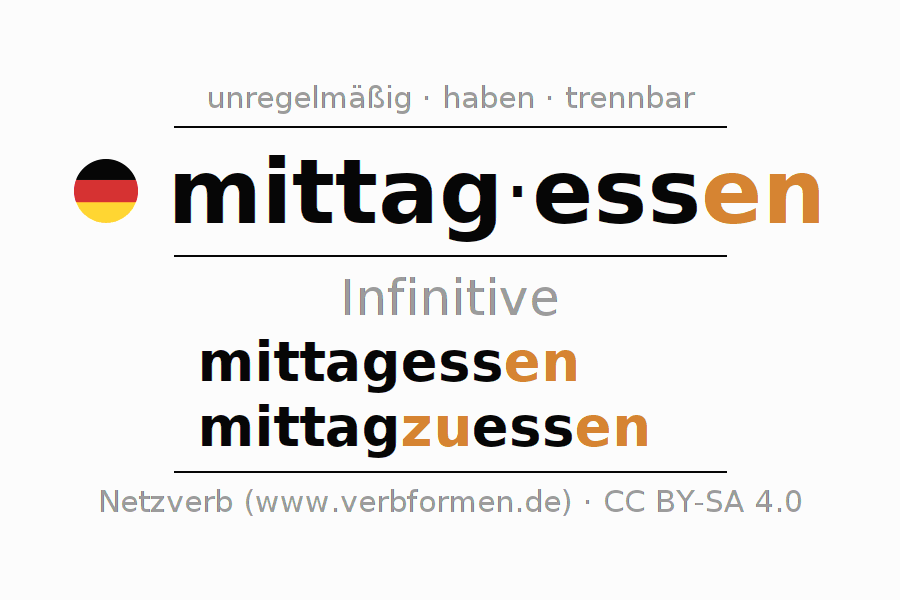Die Formen im Infinitiv von mittagessen sind: mittagessen, mittagzuessen