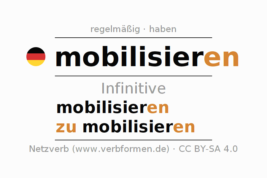 Das Verb mobilisieren vollständig in allen Personen und Numeri im Infinitiv Präsens Perfekt konjugiert