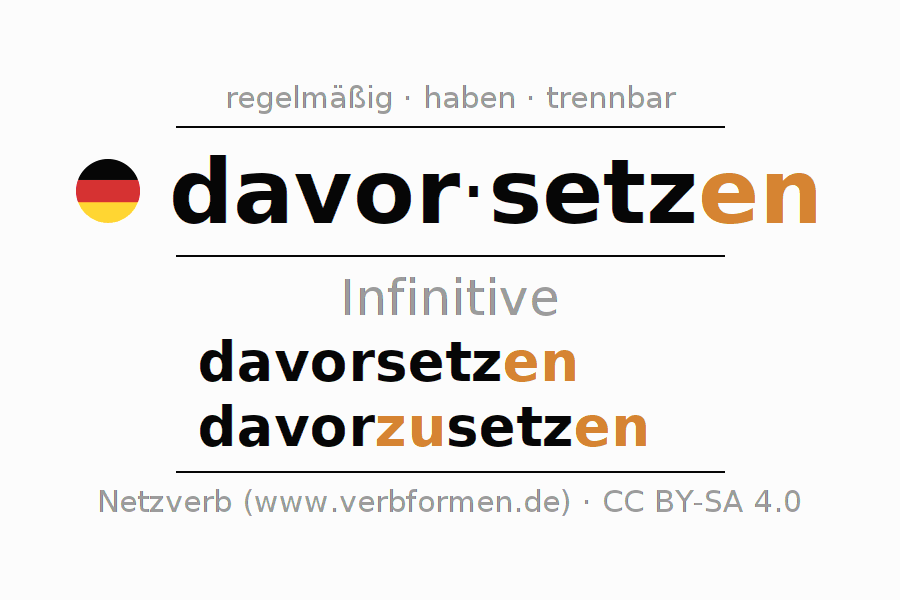 Das Verb davorsetzen vollständig in allen Personen und Numeri im Infinitiv Präsens Perfekt konjugiert