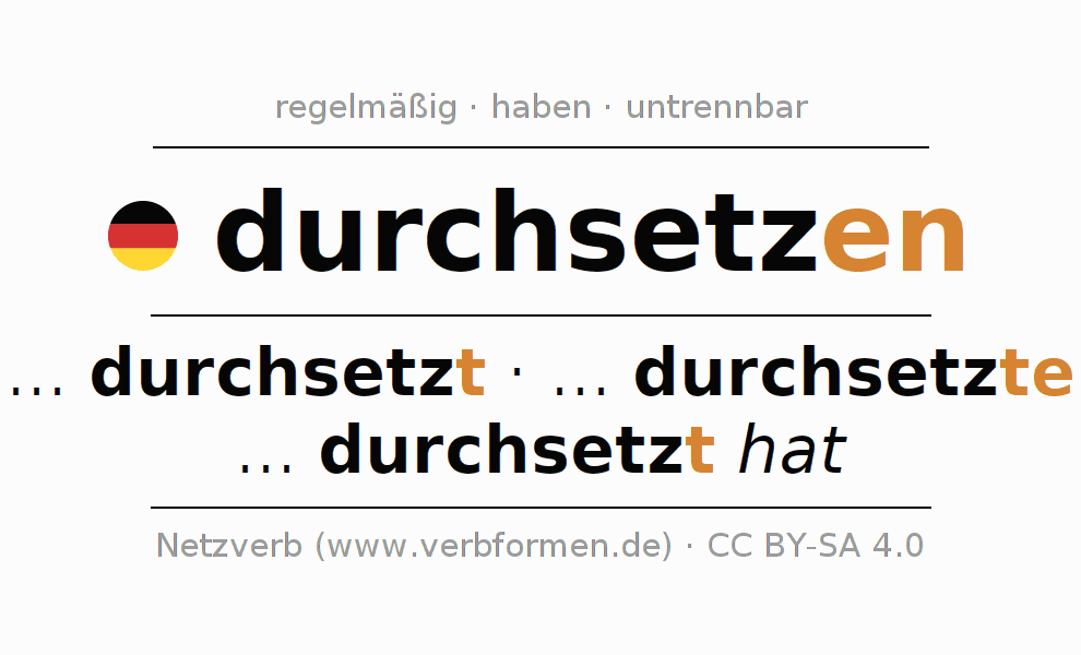 Das Verb durchsetzen vollständig in allen Personen und Numeri im Infinitiv Präsens Perfekt konjugiert