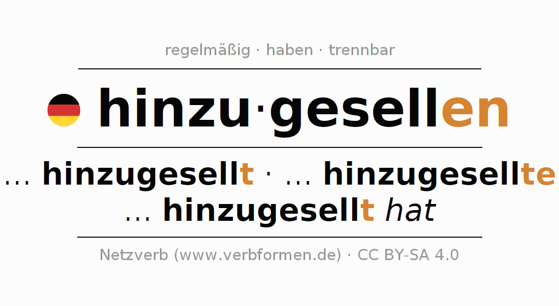 Das Verb hinzugesellen vollständig in allen Personen und Numeri im Infinitiv Präsens Perfekt konjugiert