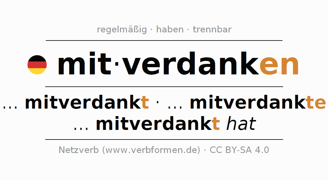 Das Verb mitverdanken vollständig in allen Personen und Numeri im Infinitiv Präsens Perfekt konjugiert