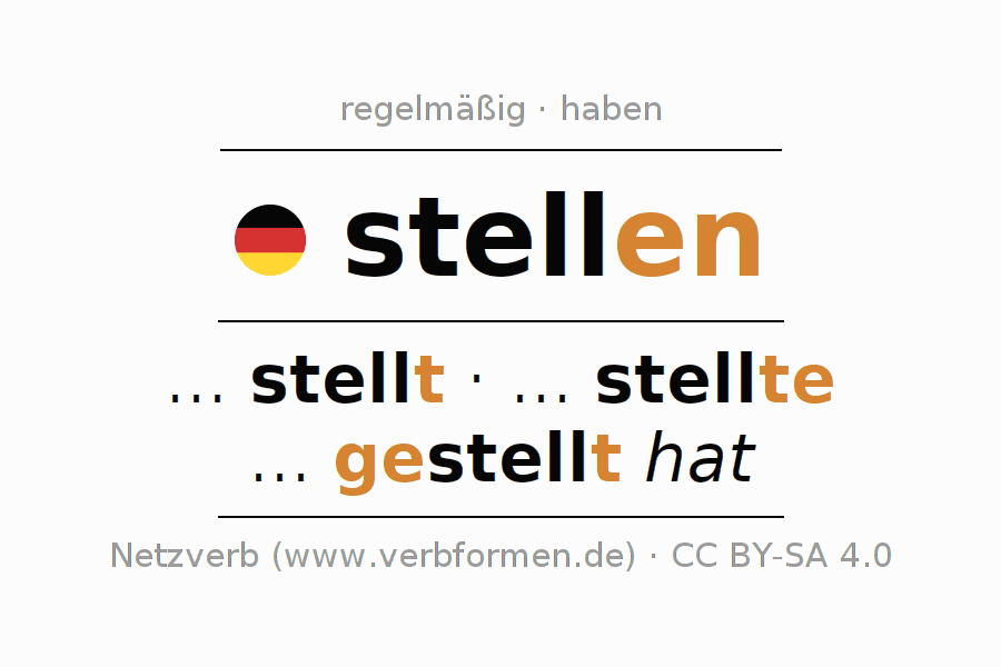 Die Konjugation von stellen im Infinitiv Präsens Perfekt Grundform Aktiv ist: stellen, zu stellen.Die Bildung dieser Formen entspricht gewissen grammatischen Regeln. So auch die Vorgaben zur Konjugation der einfachen Verbformen von stellen im Infinitiv. 2Kommentare ☆5.0