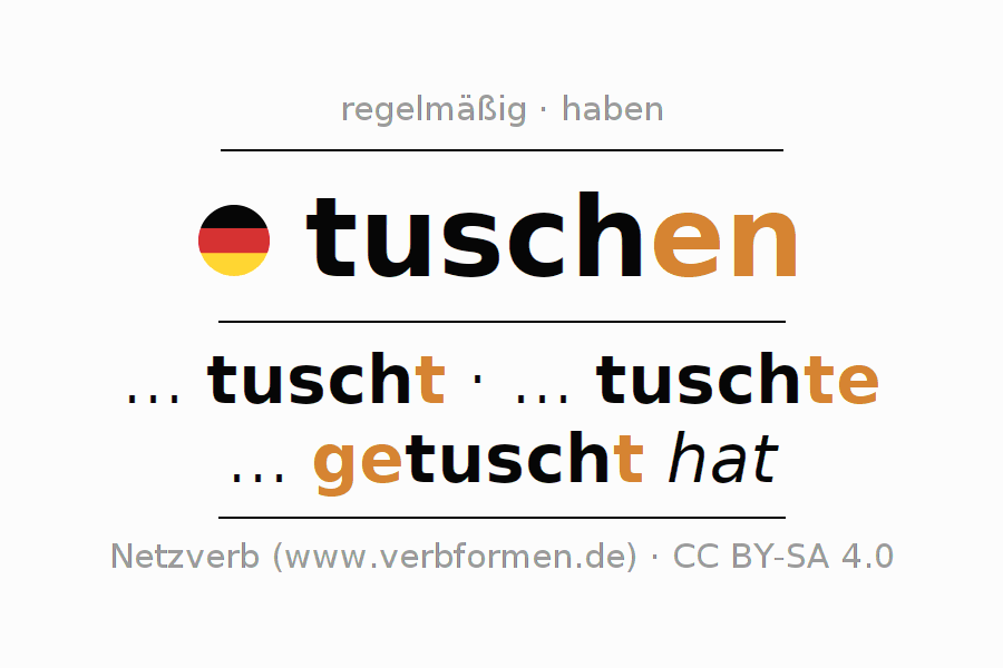 Das Verb tuschen vollständig in allen Personen und Numeri im Infinitiv Präsens Perfekt konjugiert