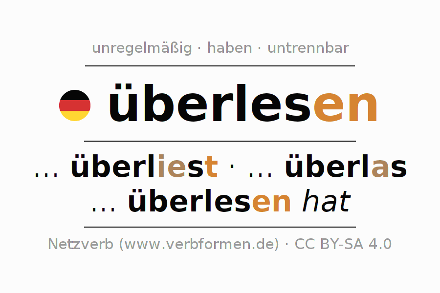 Das Verb überlesen vollständig in allen Personen und Numeri im Infinitiv Präsens Perfekt konjugiert