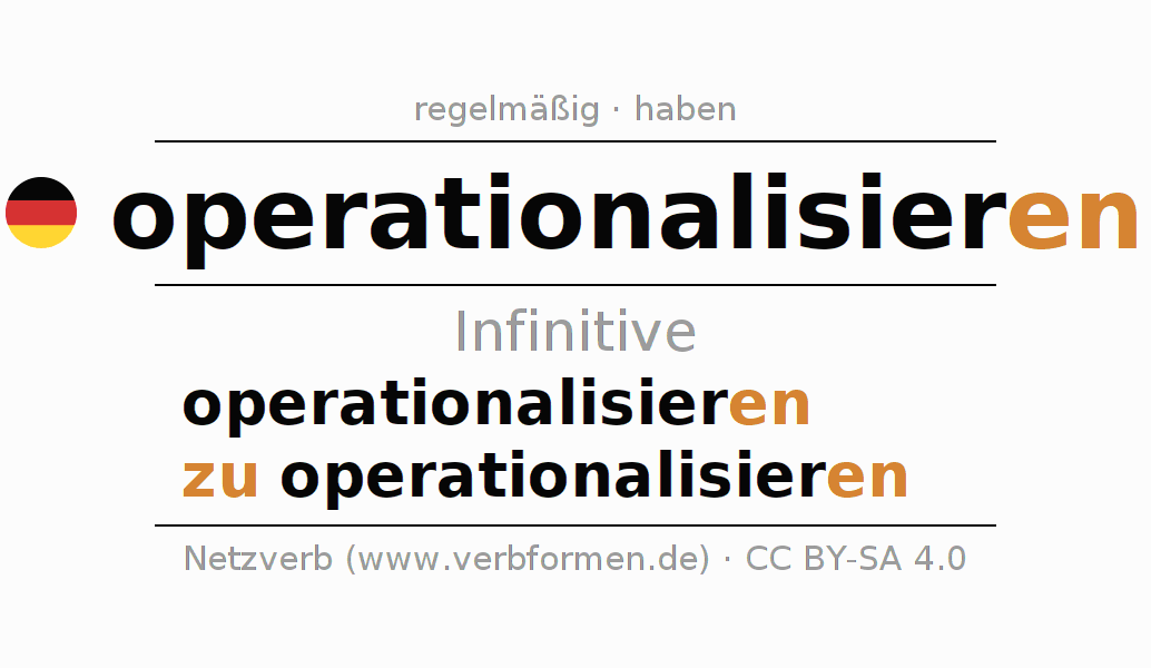 Das Verb operationalisieren vollständig in allen Personen und Numeri im Infinitiv Präsens Perfekt konjugiert