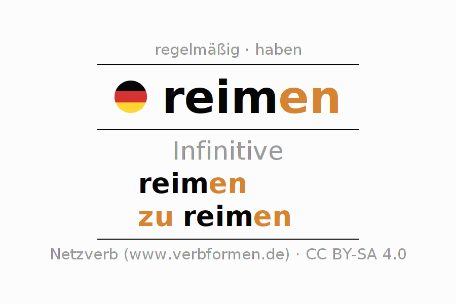Das Verb reimen vollständig in allen Personen und Numeri im Infinitiv Präsens Perfekt konjugiert