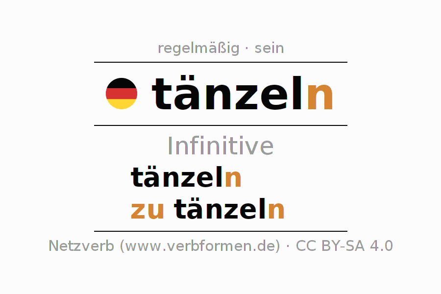 Das Verb tänzeln vollständig in allen Personen und Numeri im Infinitiv Präsens Perfekt konjugiert