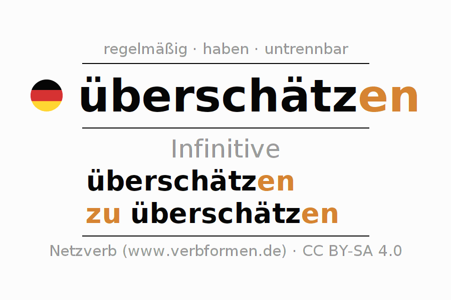 Das Verb überschätzen vollständig in allen Personen und Numeri im Infinitiv Präsens Perfekt konjugiert