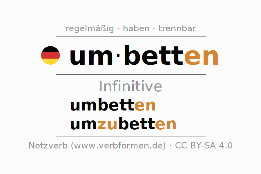 Die Formen im Infinitiv von umbetten sind: umbetten, umzubetten