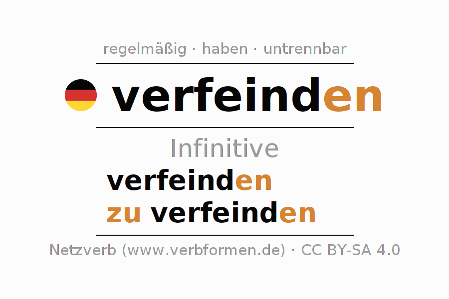 Das Verb verfeinden vollständig in allen Personen und Numeri im Infinitiv Präsens Perfekt konjugiert