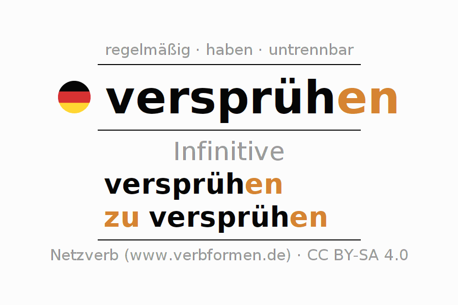 Das Verb versprühen vollständig in allen Personen und Numeri im Infinitiv Präsens Perfekt konjugiert