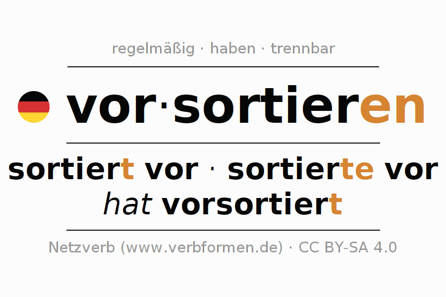 - ich sortiere vor (1. PersonSingular)