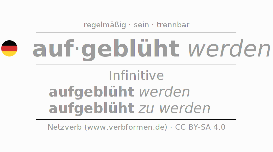Das Verb aufblühen vollständig in allen Personen und Numeri im Infinitiv Präsens Perfekt konjugiert