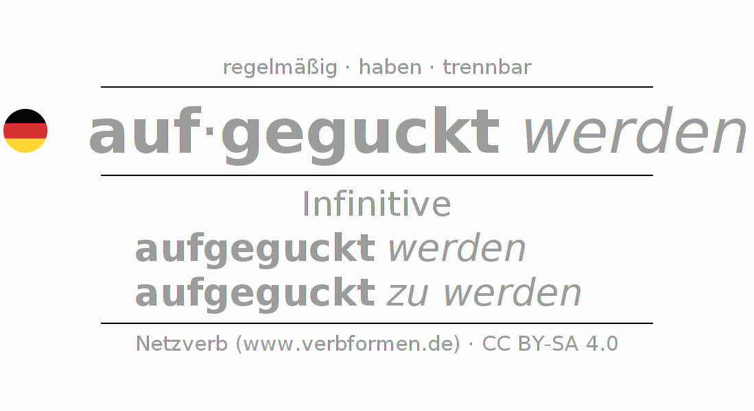 Das Verb aufgucken vollständig in allen Personen und Numeri im Infinitiv Präsens Perfekt konjugiert