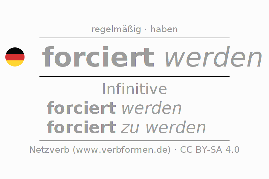 Das Verb forcieren vollständig in allen Personen und Numeri im Infinitiv Präsens Perfekt konjugiert