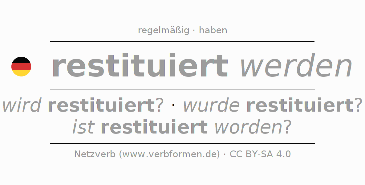 Das Verb restituieren vollständig in allen Personen und Numeri im Infinitiv Präsens Perfekt konjugiert
