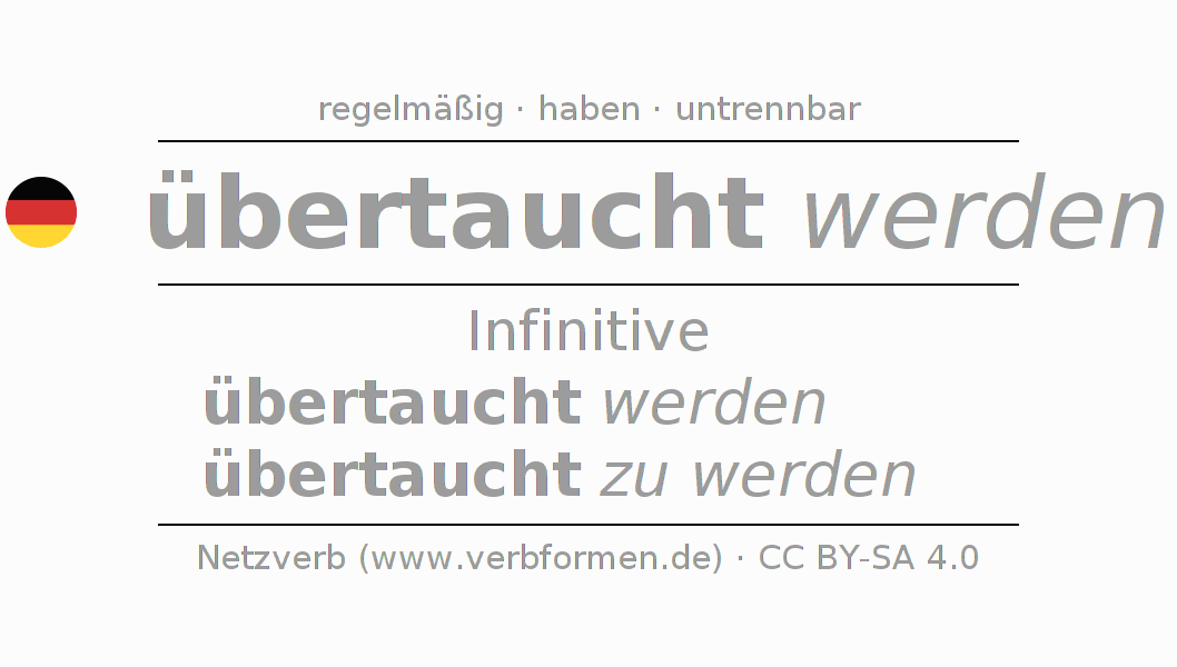 Das Verb übertauchen vollständig in allen Personen und Numeri im Infinitiv Präsens Perfekt konjugiert