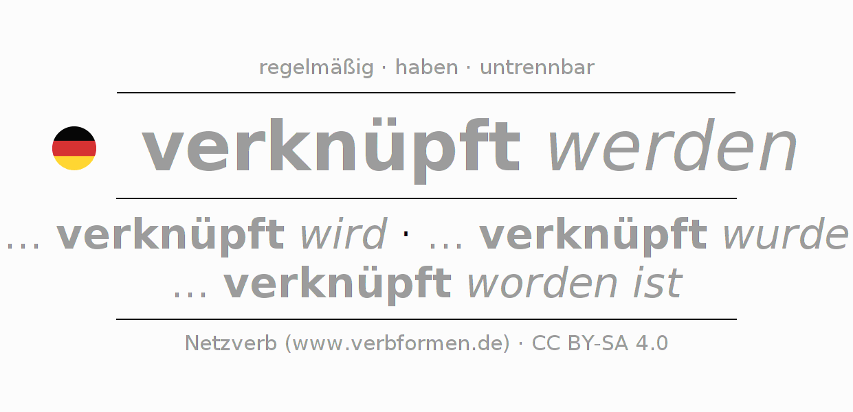 Das Verb verknüpfen vollständig in allen Personen und Numeri im Infinitiv Präsens Perfekt konjugiert